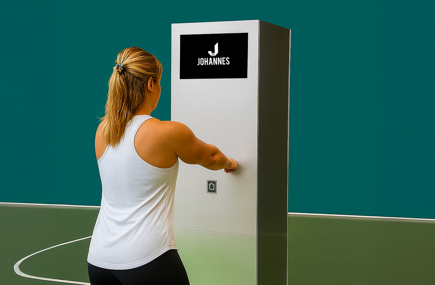 La dinamica di interazione è basata su un esercizio fisico da completare, come per esempio una ‘squat challenge’, in cui l’utente deve posizionarsi di fronte a un totem, dotato di un sistema dedicato al tracciamento del movimento della persona, per effettuare il maggior numero di ripetizioni in un tempo prefissato.