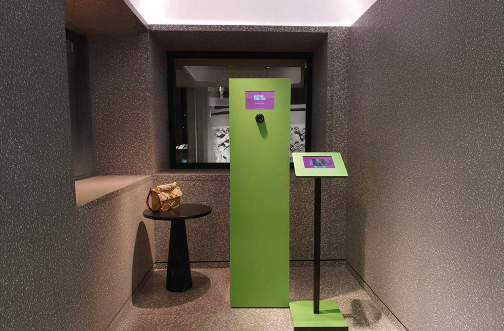 consentendo di personalizzare direttamente da un piccolo touchscreen posizionato sul totem del prodotto, l’output fisico finale da consegnare, che sarà un nastro in tessuto utilizzabile, per esempio, come braccialetto.