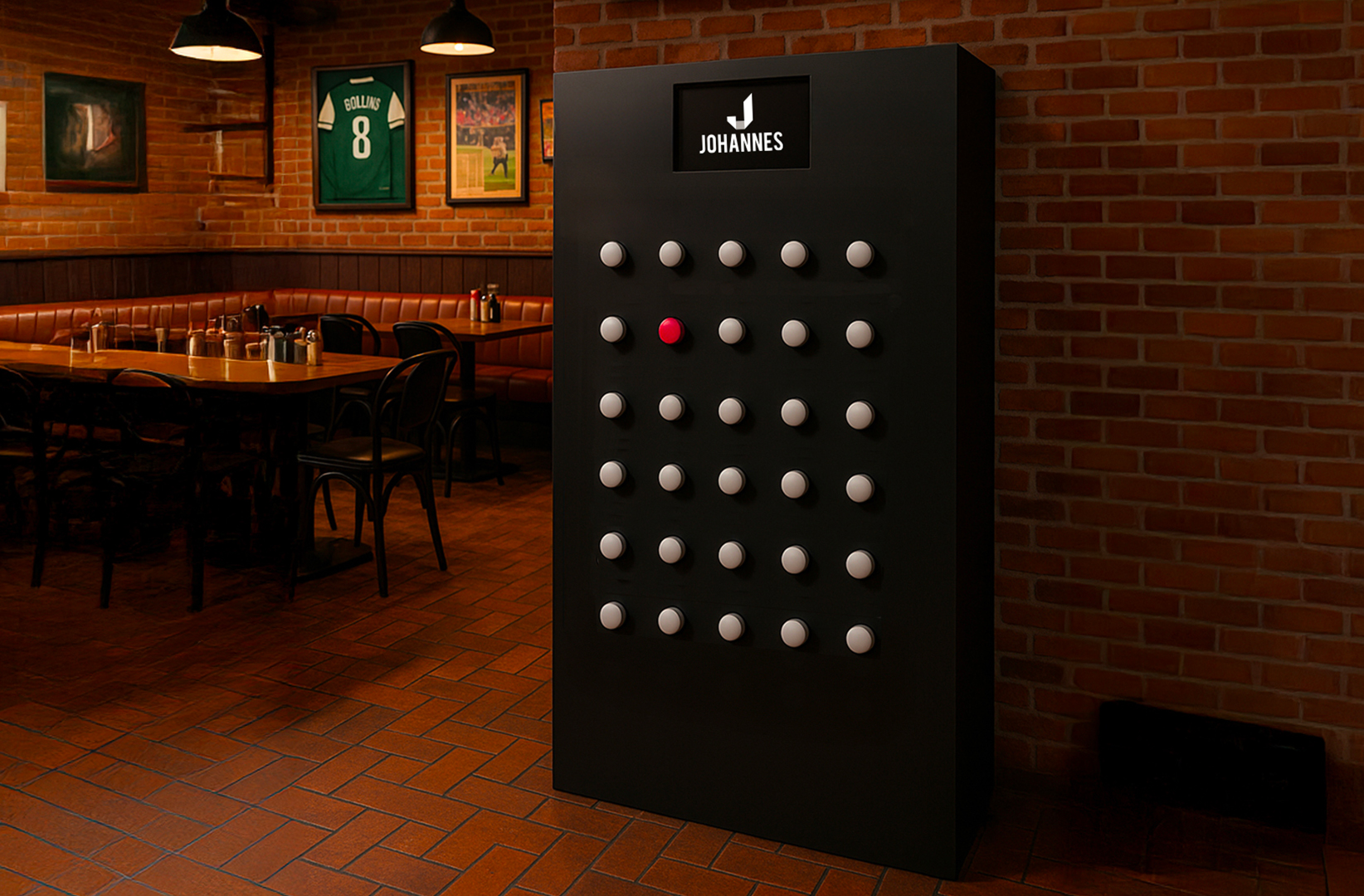La macchina è totalmente personalizzabile, in termini di grafiche fisiche e digitali ed è dotata anche di uno schermo al suo interno in cui inserire contenuti multimediali legati al flusso di gioco e al brand.