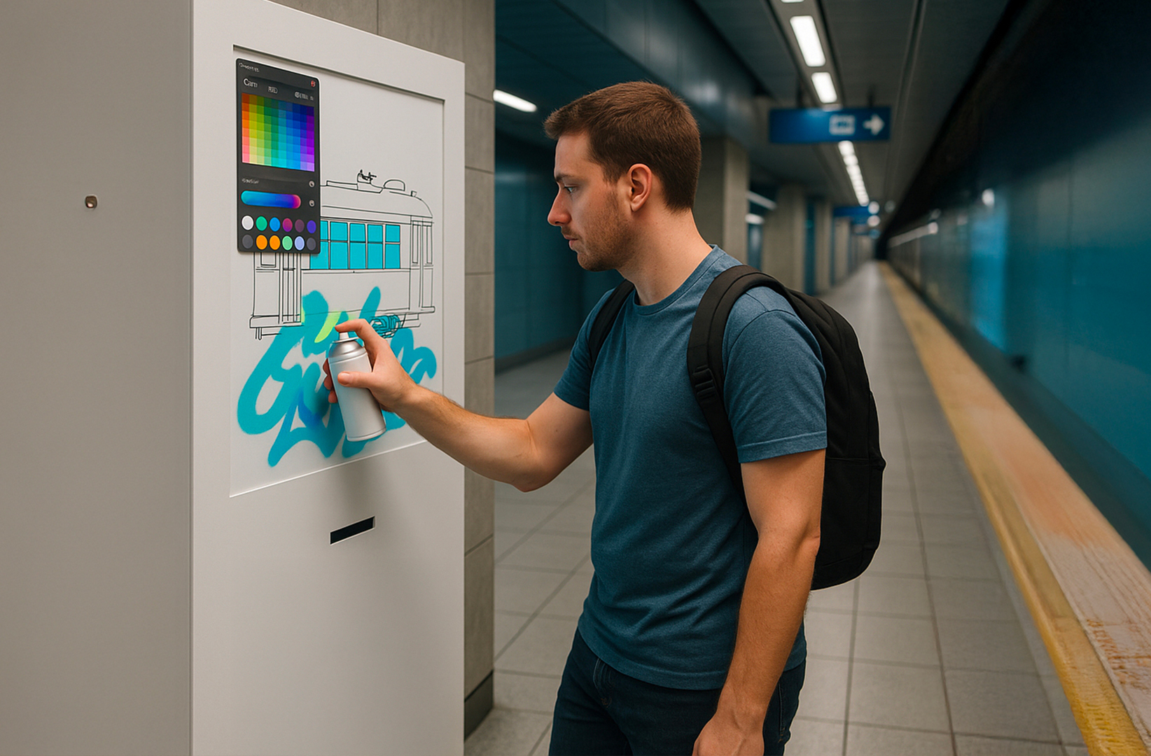 Lo street art wall si compone di uno schermo a retroproiezione e 2 bombolette spray che saranno il pennello digitale degli ospiti.